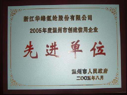 為進(jìn)一步推進(jìn)“信用溫州”建設(shè),提高企業(yè)誠信守法經(jīng)營意識(shí),規(guī)范企業(yè)信用行為,溫州市人民政府決定,命名浙江華峰氨綸股份有限公司等89家企業(yè)為2005年度溫州市創(chuàng)建信用企業(yè)先進(jìn)單位。