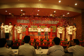 當(dāng)晚,在錢塘陽(yáng)光大酒店陽(yáng)光廳“文明禮儀形象使者”頒獎(jiǎng)晚會(huì)現(xiàn)場(chǎng),印著文明標(biāo)語(yǔ)的條幅高高懸掛,穿著印有文明主題T恤衫的觀眾熱情飛揚(yáng),帶有文明標(biāo)語(yǔ)的彩色充氣棒隨“聲”舞動(dòng)……整場(chǎng)晚會(huì)洋溢著華峰人的激情與活力。伴隨著禮儀小姐展開(kāi)“愛(ài)企、誠(chéng)信、遵章、知禮”的主題橫幅,晚會(huì)正式拉開(kāi)了帷幕,公司總經(jīng)理?xiàng)顝牡菫橥頃?huì)致上了熱情洋溢的開(kāi)幕詞。隨后,公司一線員工代表和中高層領(lǐng)導(dǎo)共同作為頒獎(jiǎng)嘉賓,分批為 “文明禮儀形象使者”獲得者頒發(fā)獎(jiǎng)杯和榮譽(yù)證書(shū)。無(wú)論是頒獎(jiǎng)時(shí)嘉賓們相互謙讓的細(xì)節(jié),還是VCR短片中各位使者的風(fēng)采……這些都為晚會(huì)增添了一道亮麗的“文明風(fēng)景線”。