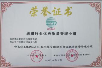 8月,華峰氨綸東山工廠機修QC小組憑借“降低韓國產SSW-12B型卷繞機故障率”的申報課題,被中國紡織工業(yè)協(xié)會評為“2009年度全國紡織行業(yè)優(yōu)秀質量管理小組”稱號。