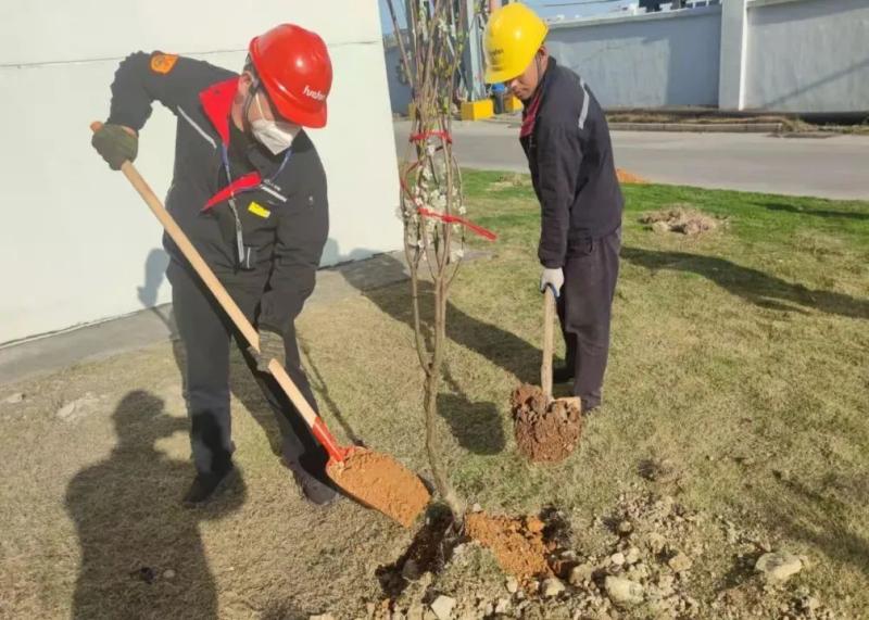 本次活動(dòng)種植了桂樹、茶樹、枇杷樹等合計(jì)35株樹苗,參與人員約40人。每株樹苗上都掛上了種植人和樹種名稱,參與人員除了種樹外,還需定期養(yǎng)護(hù)樹苗。本次活動(dòng)得到了參與人員的強(qiáng)烈響應(yīng),紛紛表示希望明年的植樹節(jié)也能在熱電進(jìn)行。本次活動(dòng)不但踐行了華峰的綠色理念,也同時(shí)美化了公司環(huán)境,到了今年秋天,大家就可以體驗(yàn)收獲果實(shí)的樂趣了。(陳余輝)