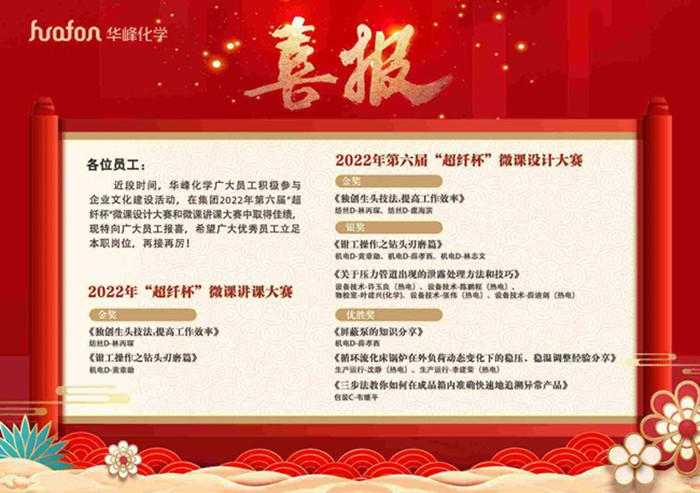 “超纖杯”微課制作與講課大賽作為集團文化藝術(shù)節(jié)中的一項深化知識管理的品牌活動,已連續(xù)舉辦6年,旨在挖掘典型管理案例,推廣優(yōu)秀操作經(jīng)驗,探索微課在培訓課堂上教學和崗位實踐中應(yīng)用的有效模式,推進“傳幫帶”制度落地,提升員工知識總結(jié)分享效果,促進培訓資源共建共享,從而增強員工綜合素質(zhì)。