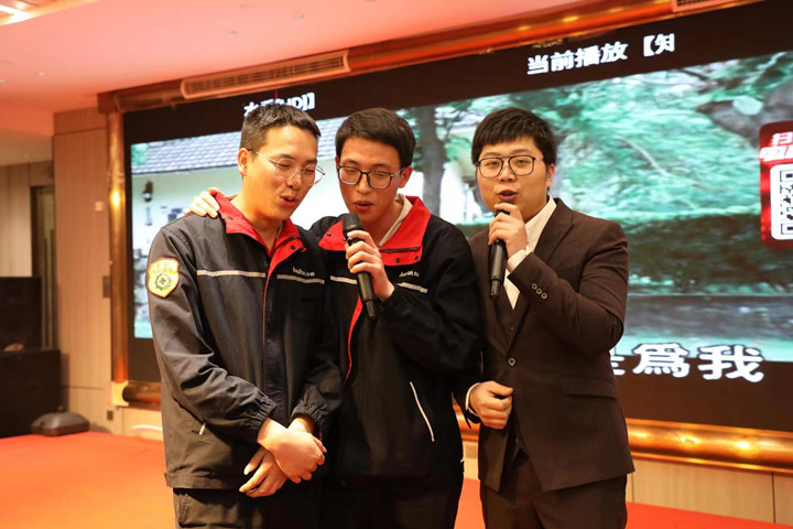當(dāng)晚,整場活動充滿了溫馨和歡樂,各個精彩節(jié)目輪番上演。留瑞駐崗人員相片展,讓員工感受了眾多華峰人留瑞過節(jié)的堅(jiān)守;儲備大學(xué)生表演的影子劇《我們來自五湖四!罚尨蠹以谝暵犗硎苤懈惺艿搅巳A峰創(chuàng)業(yè)的力量;廣泛采集并剪輯的《鄉(xiāng)音》節(jié)目和親人現(xiàn)場視頻連線,濃濃的情感讓異鄉(xiāng)的同事產(chǎn)生了強(qiáng)烈的共鳴……除了豐富的自創(chuàng)節(jié)目外,公司還設(shè)置了各個充滿創(chuàng)意的獎項(xiàng),有為在場屬兔員工頒發(fā)的“最美福兔獎”,有為來自上千公里外在華峰工作員工頒發(fā)的“最美奔兔獎”,也有為雙職工頒發(fā)的“最美夫妻獎”,更有為連續(xù)兩年獲得A+績效員工頒發(fā)的“績效‘兔’出獎”。整場晚會,場面溫馨,歡樂滿滿。