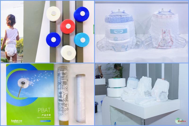 本次展會(huì),華峰化學(xué)攜旗下千禧衛(wèi)材用氨綸產(chǎn)品精彩亮相。作為一種可替代傳統(tǒng)橡膠制松緊線的彈性材料,千禧?衛(wèi)材用氨綸產(chǎn)品彈性和退繞性能優(yōu)異,達(dá)到國(guó)際前列水平,可以廣泛應(yīng)用在紙尿褲、拉拉褲、經(jīng)期褲、紙尿片等衛(wèi)生用品中。同時(shí),產(chǎn)品規(guī)格和性能可滿足定制化需求,采用大絲卷包裝。此外,來自環(huán)保公司的PBAT和PPC下游應(yīng)用產(chǎn)品也一同在展位上展出。