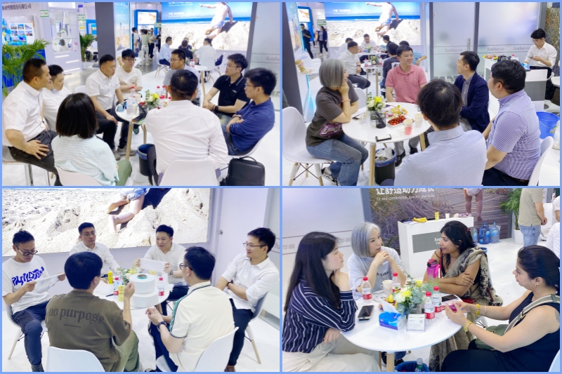 展會(huì)現(xiàn)場(chǎng),工作人員向前來咨詢交流的國(guó)內(nèi)外知名采購商和觀眾,詳細(xì)介紹了產(chǎn)品的特點(diǎn)以及應(yīng)用方向。憑借著優(yōu)越的產(chǎn)品品質(zhì)、專業(yè)的技術(shù)服務(wù),華峰化學(xué)展位前觀眾絡(luò)繹不絕,人氣爆棚。