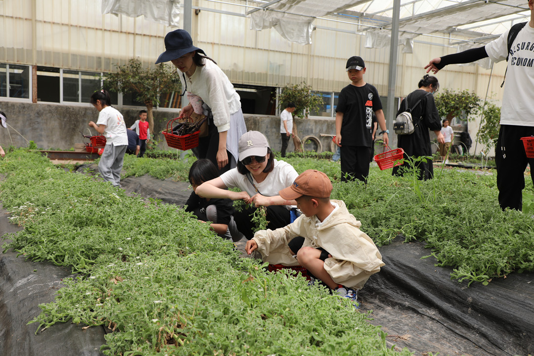 進入農場,各類蔬菜瓜果映入眼簾,在工作人員的指導和帶領下,一場親近自然的活動馬上上演。在挖土豆的現(xiàn)場,大家忙的不亦樂乎。有的小朋友小心翼翼,生怕弄傷了土豆;有的小朋友快速掌握經驗,一挖一個準;也有個別小朋友不僅滿頭大汗,還發(fā)出了“挖土豆也太難了”的感慨。借此契機,一同參與活動的家長立馬現(xiàn)場進行言傳身教:“農民伯伯種土豆,挖土豆可比我們今天辛苦多了,他們要經過辛苦的播種、施肥、澆水、除草,最后才可以收獲土豆! 在寓教于樂的研學過程中,家長陪伴著孩子一起成長,一路收獲。