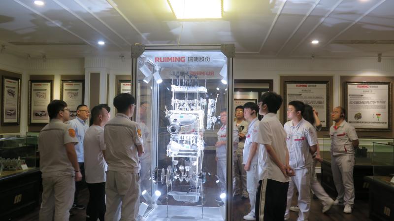 在瑞明股份公司黨總支書記、行政負(fù)責(zé)人錢琦嘉的介紹下,一行人來到文化展廳,通過豐富的內(nèi)容展示,大學(xué)生了解了瑞明的發(fā)展歷程。在產(chǎn)品展廳,通過工作人員多角度的講述,大學(xué)生們對瑞明及其汽配產(chǎn)品有了深入的了解。在智能化生產(chǎn)車間,機(jī)器換人大規(guī)模、成系統(tǒng)實施,信息化、高精度、高效率、低勞動負(fù)荷的突出亮點,給參觀人員留下了深刻的印象。