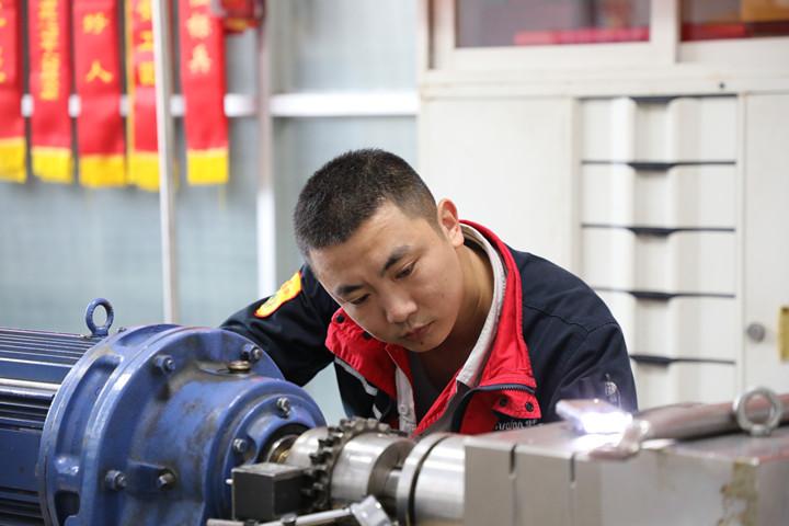 在鉗工擂臺賽現(xiàn)場,一臺減速機和泵組成的連體設(shè)備擺放在黃章勛大師工作室,“齒輪泵聯(lián)軸器調(diào)整”對于華峰集團瑞安各個生產(chǎn)型子公司,都是一個共性操作項目,檢驗的是機修工對日常傳動設(shè)備的精準對接能力。在第二個比賽日,在新材料公司選手張乾形完成比賽后,工作室牽頭人黃章勛在聚合車間電話通知化學公司選手薛孝西抽空參賽。半個小時后,薛孝西忙完手中的檢修任務(wù)來到工作室,只見他在監(jiān)控設(shè)備前,給記錄時間的對接人打完電話,就馬不停蹄地進行了熟練操作。架上百分表、調(diào)減速機底座、插入調(diào)整墊片、調(diào)整聯(lián)軸器中心點,一次一次循序漸進,經(jīng)過多次細調(diào),薛孝西花費24分38秒時間完成調(diào)試任務(wù),隨后打電話上報比賽完結(jié)。薛孝西坦言:“這種自主式打擂臺的新方式,讓我有充足的時間安排日常工作,不耽誤事情。剛剛比完項目,我就可以去檢修了,時間很緊湊!鳖愃频牟僮,在隨后的時間里,十多位選手挨個大展身手。他們需要接受苛刻的操作考核,不僅要在最短時間內(nèi)完成操作,而且還要將手工調(diào)整好的設(shè)備軸距和徑距誤差,控制在0.05毫米范圍內(nèi),相當于一根頭發(fā)絲的一半粗細。