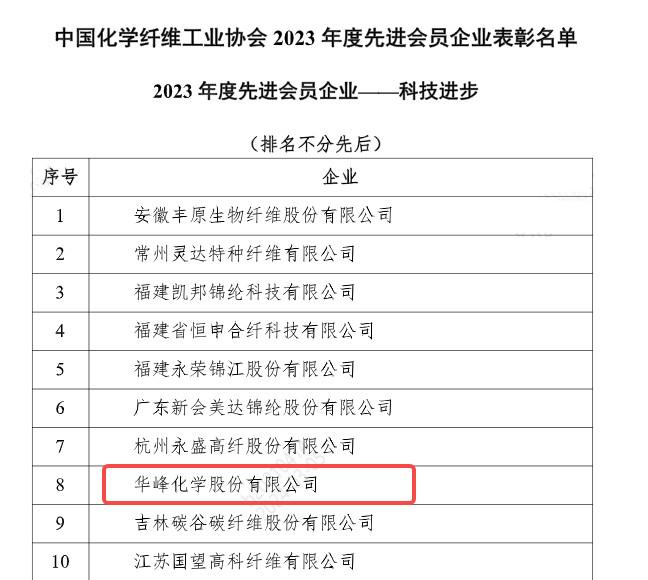 2月26日,中國(guó)化學(xué)纖維工業(yè)協(xié)會(huì)公布年度先進(jìn)會(huì)員企業(yè)名單,華峰化學(xué)公司榜上有名。本次先進(jìn)會(huì)員考評(píng)涉及科技進(jìn)步和科技創(chuàng)新等四個(gè)領(lǐng)域,公司以突出的技術(shù)創(chuàng)新成果,斬獲“科技進(jìn)步類(lèi)先進(jìn)會(huì)員”榮譽(yù)。