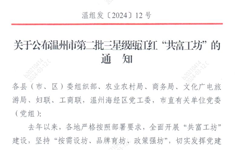 3月上旬,位于華峰化學(xué)公司包裝C車間的“華峰•共富工坊”,獲評溫州市三星級甌江紅“共富工坊”榮譽,這也是目前溫州地區(qū)共富工坊創(chuàng)建的最高成效,同時,也是包裝C車間繼獲得“瑞安市示范型共富工坊”之后,榮獲的又一項殊榮。近年來,公司黨總支響應(yīng)街道和市級單位的號召,積極推動共富工坊建設(shè),并對包裝C車間的工坊進(jìn)行全程培育和創(chuàng)建。目前,包裝C車間在技能提升創(chuàng)增收、共富建設(shè)提素養(yǎng)方面,取得了階段性成效。